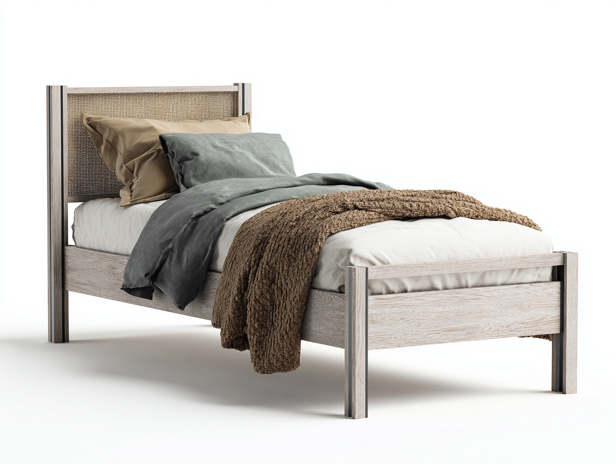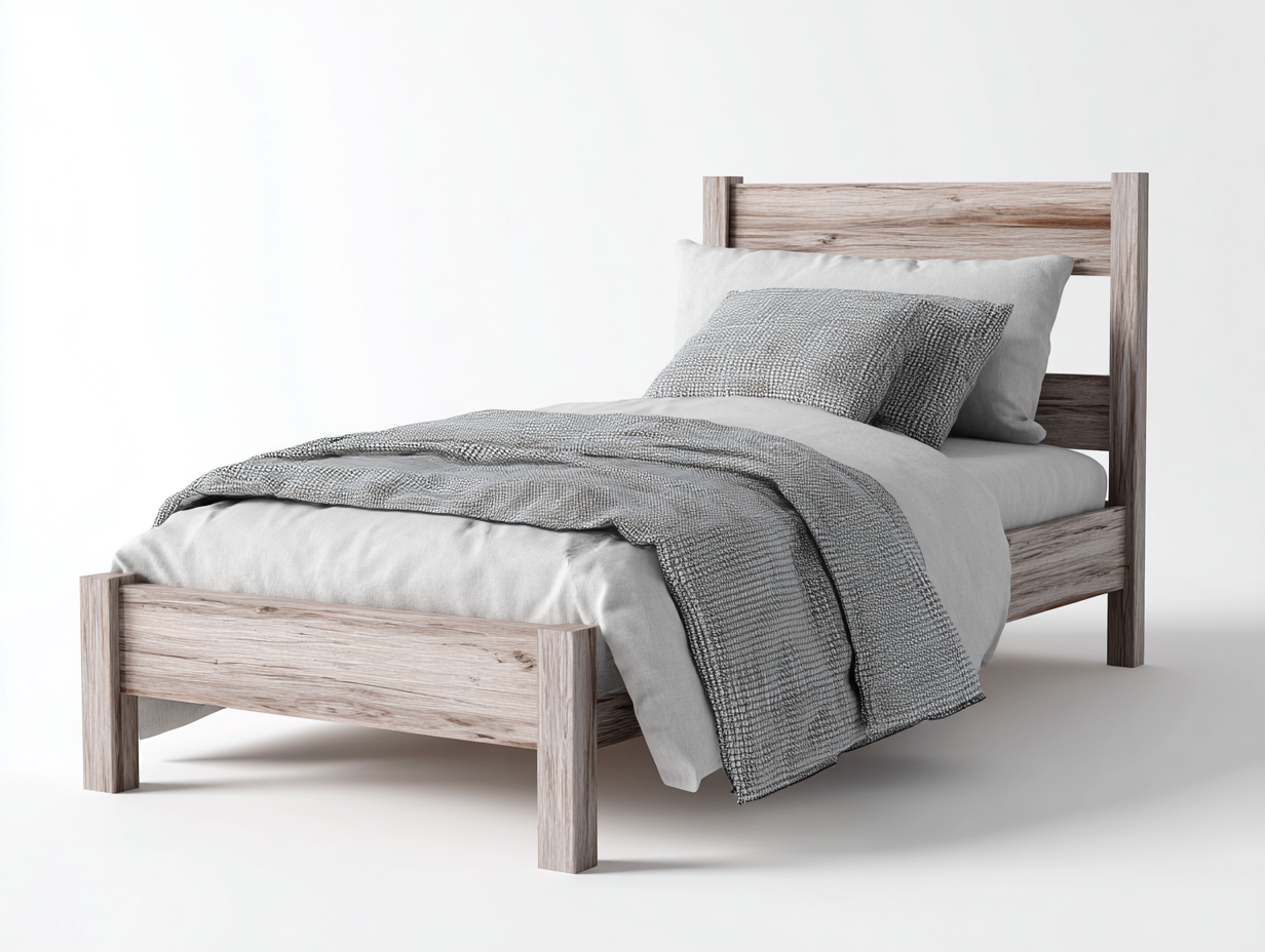 Lit simple en bois 200x90x95 cm - bois clair - confort chambre design fonctionnel
