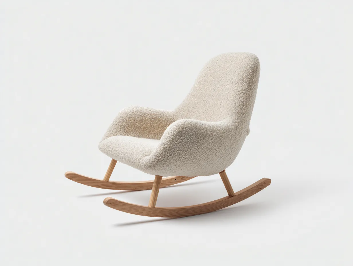 Fauteuil à bascule en tissu et bois 78x92x98 cm - beige - fauteuil intérieur à balancement doux et design épuré